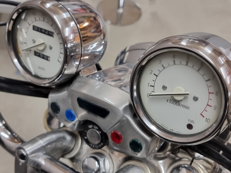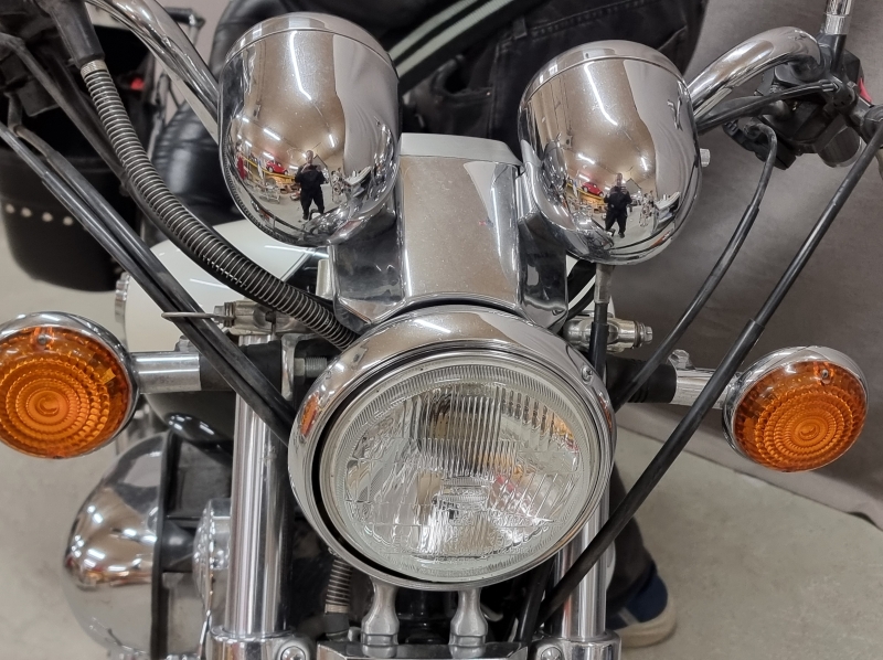 Mittarilukema 61 420 km. Lyhyessä koeajossa tuntuisi toimivan hyvin. Siistikuntoinen, mukana satulaukut. Kromit ja maalit suht. hyvät. Näyttävä kokonaisuus. Ei havaittuja vuotoja