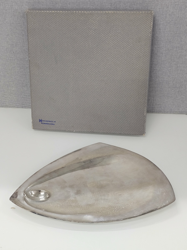 #1580 Tapio Wirkkala hopeinen taidelautanen v. 1962, 916h, 713g