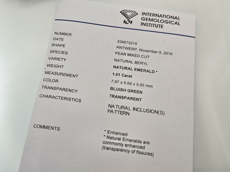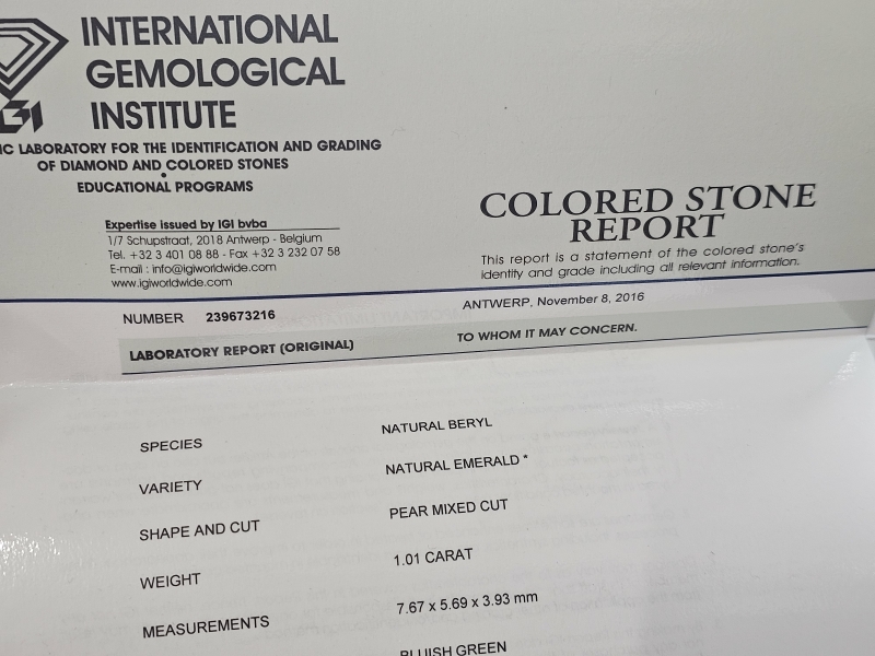 #1583 1,01ct smaragdi + IGI -aitoustodistus